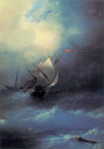 бедствующими после кораблекрушения людьми. Северный Ледовитый океан никогда не прощает слабых. Не любит неподготовленых и беспечных людей. Он до поры до времены тих и спокоен, но временами бунтует, когда люди на легких суденышках появляются в водах. Воды океаны стального цвета, они настолько холодны, что водоросли делающие другие океаны столь красивыми, бирюзовыми или синими, здесь не выживают; и еще, океан дружит с серым холодным небом и оно часто отражается в его водах. Буря застает эскадру недалеко от берега, потому что чайки уже вьются над кораблями, словно предупреждая, что спасение близко. И верно, часть неба светлеет, появляется солнце, вскорости океан утихнет и, возможно, откажется от жертвы — пары парусников и их команды.